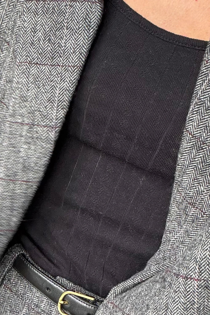 maatadvies: Neem je gewoonlijke maat voor een aansluitende, comfortabele pasvorm. Julie draagt M op de foto's.