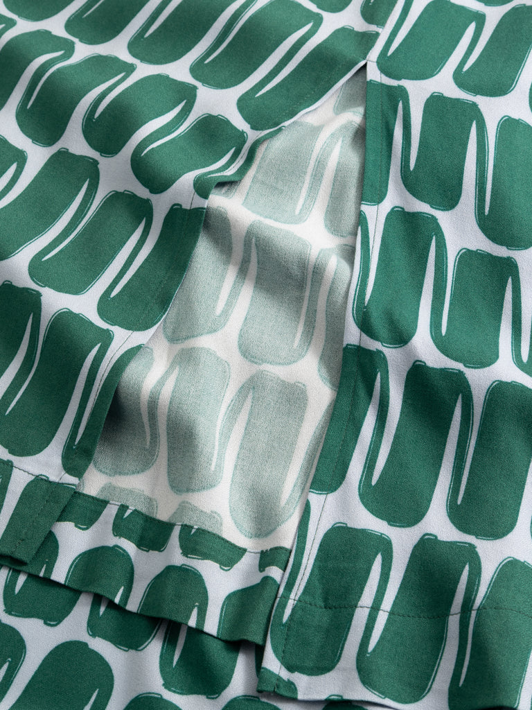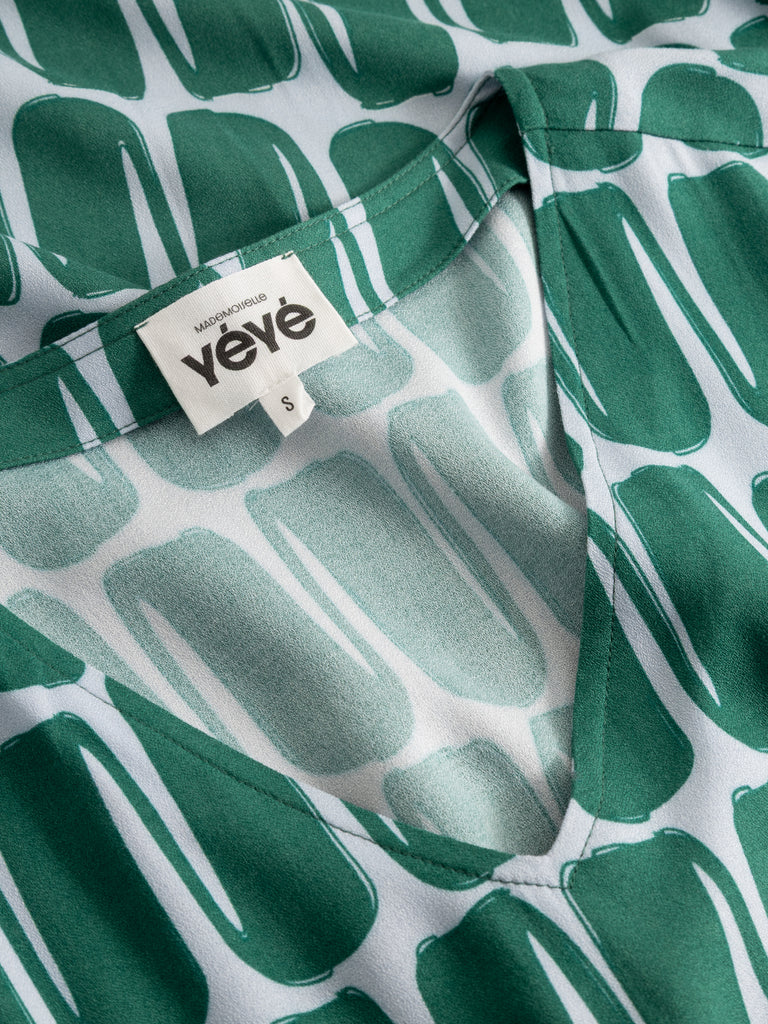 beschrijving: Een prachtige, supervrouwelijke zomerjurk in een lichtblauwe & appelblauwzeegroene kleurencombo! Met korte mouwtjes, twee pockets opzij, V-hals en aan de linkerzijde een split tot kniehoogte. De brede elastische tailleband is een mooi detail dat ook nog eens extra comfort creëert.