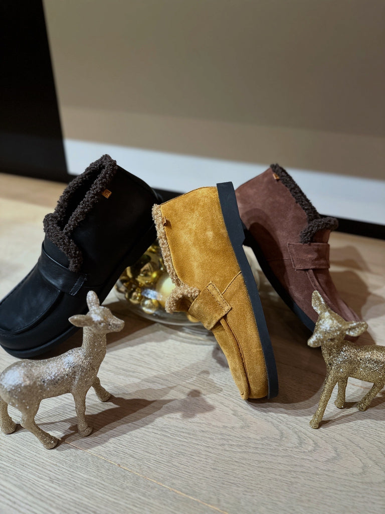 ook beschikbaar in 'toffee'-bruin suède & chocoladebruin suède