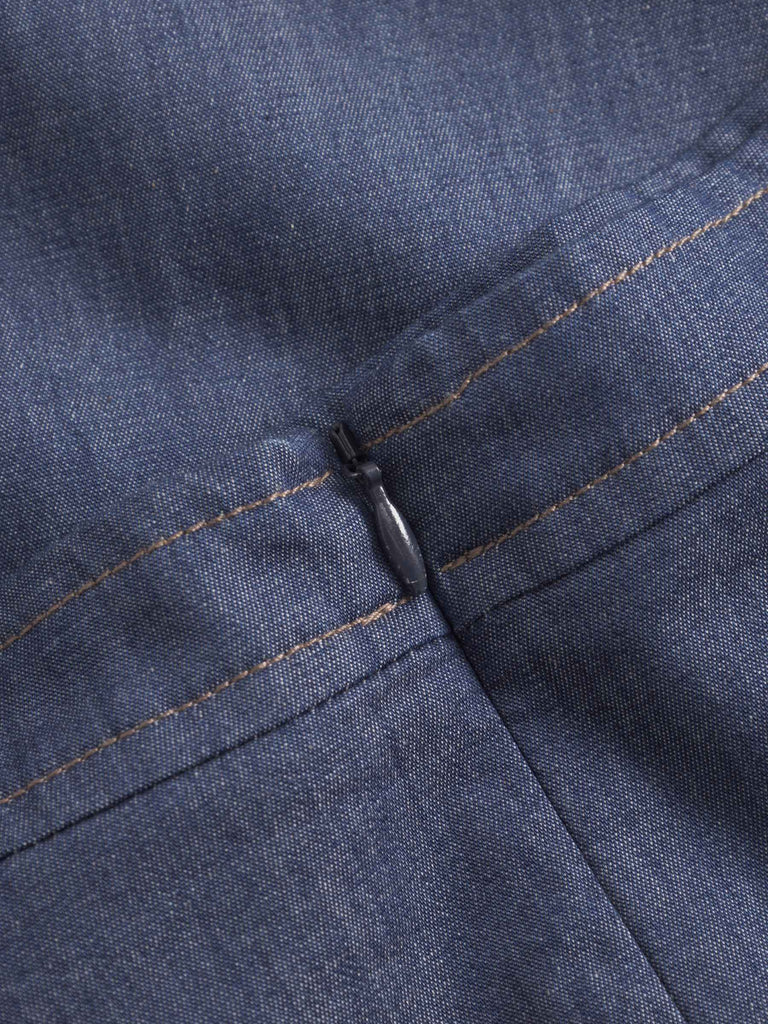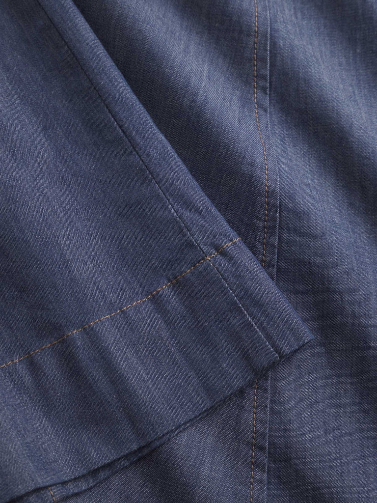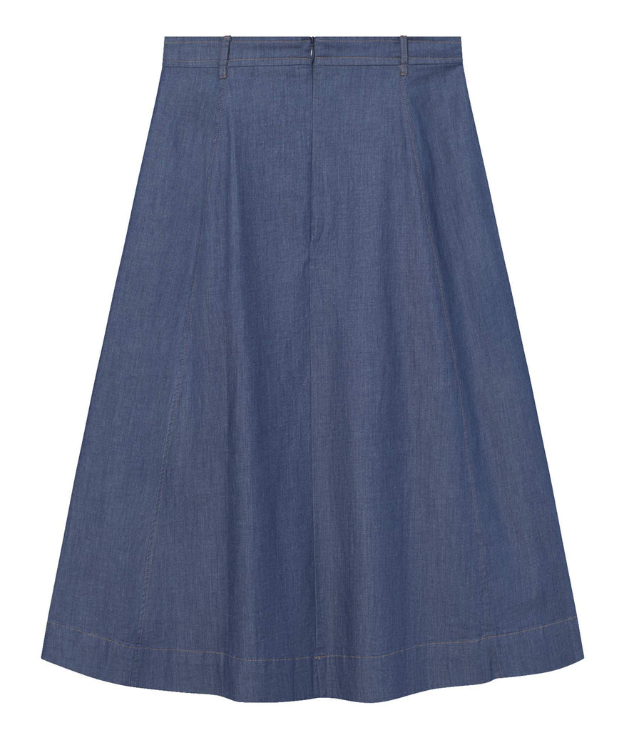 description: A casual chic skirt that you can wear to all kinds of events! The midi-length, high waist, floaty A-shape and dark blue fabric create a feminine look, without being too dressed-up. Zipper in the back. Two quirky side pockets. This clothing item is an essential part of your wardrobe!