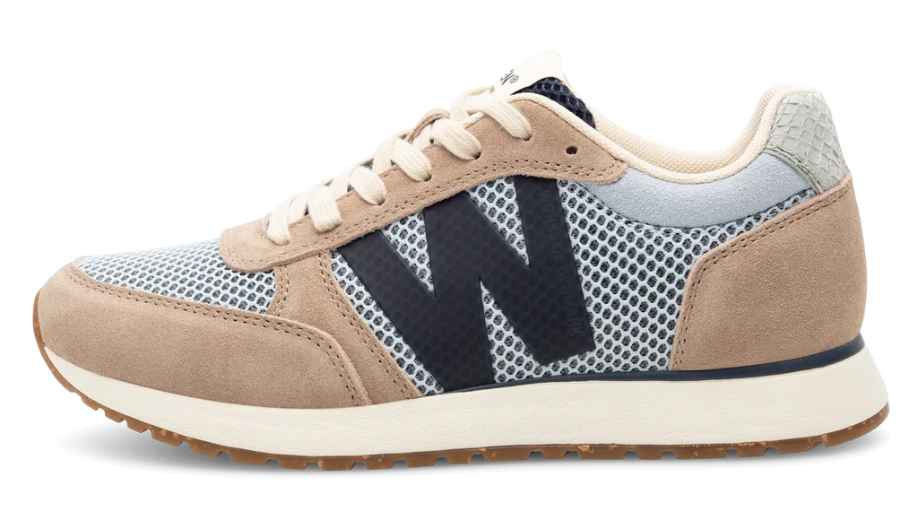 buitenkant: suède, gerecycleerd mesh, textiel + leder details