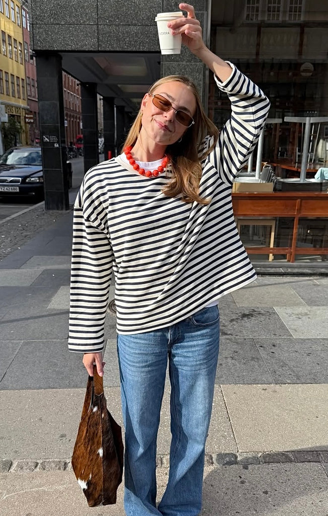 description: The kind of oversized sweater you never want to take off! Stylish maritime vibes (a true classic) with a comfy, casual twist thanks to the oversized fit and round neckline. The Lolly's Laundry logo, stitched on the back, is the perfect cherry on top.